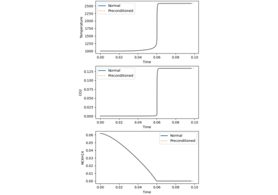 Constant-pressure, adiabatic kinetics simulation with sensitivity analysis