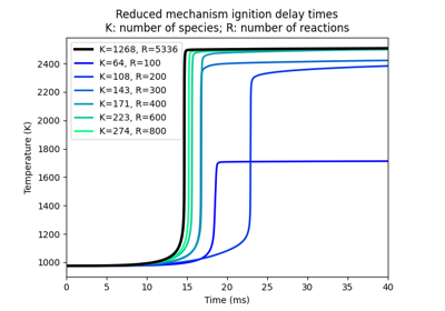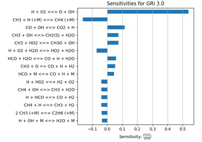 Constant-pressure, adiabatic kinetics simulation with sensitivity analysis