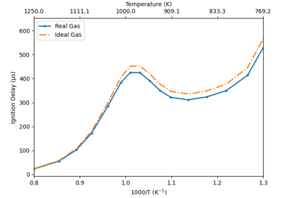 Ignition delay time using the Redlich-Kwong real gas model